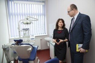 Wizyta Prezydenta Gdańska Pawła Adamowicza w Instytucie Wspomagania Rozwoju Dziecka przy ul.Malczewskiego w Gdańsku. Nz. po lewej Wicedyrektor IWRD Iwona Ruta-Sominka, po prawej Dyrektor IWRD Anna Budzińska
