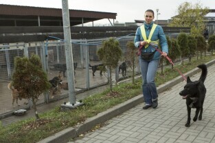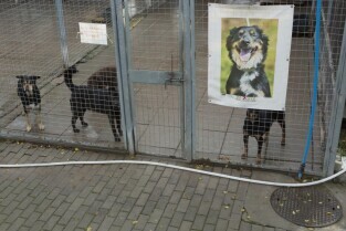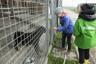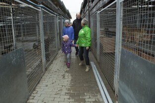 Prezydent Gdańska Paweł Adamowicz z córkami Antoniną i Teresą w schronisku dla bezdomnych zwierząt "Promyk" w Gdańsku Kokoszkach