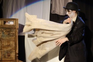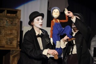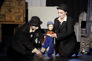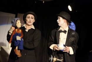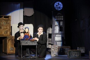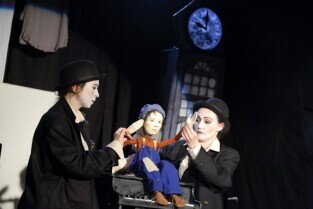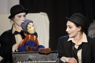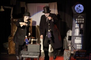 Gdańsk. Próba medialna w Teatrze Miniatura, spektakl lalkowy "Baloniarze" dla dzieci od 5 lat inspirowany twórczością Tima Burtona.