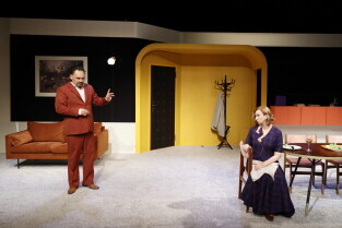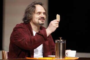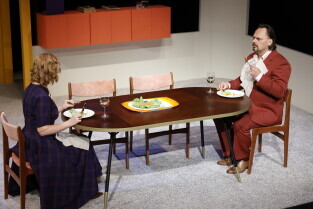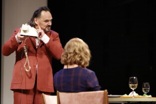 Gdańsk, Scena Stara Apteka. Próba medialna spektaklu KIM JEST PAN SCHMITT? w reżyserii Jana Hussakowskiego. W spektaklu występują: Monika Chomicka-Szymaniak, Piotr Chys, Piotr Łukawski, Adam Turczyk.