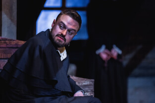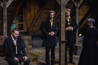 Gdańsk, ul. Teatralna. Próba medialna spektaklu KOŁO SPRAWY BOŻEJ Konrada Hetela
