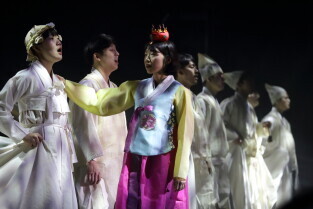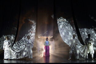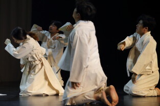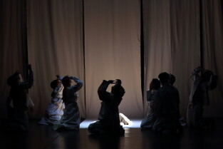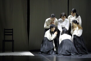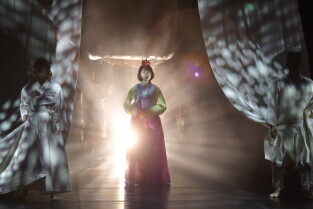 Gdański Teatr Szekspirowski. Próba medialna spektaklu „Cho-Hon” czyli „Przyzwanie duchów zmarłych" w wykonaniu zespołu Sam-New Theatre z Seulu w Korei Płd.