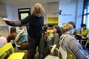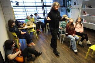 Gdańsk. Próba spektaklu Lilianny Witkiewicz Córki pisarki Magdaleny Witkiewicz. Nz. Lilianna Witkiewicz - reżyserka spektaklu.