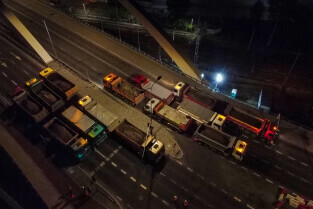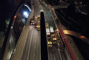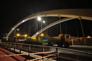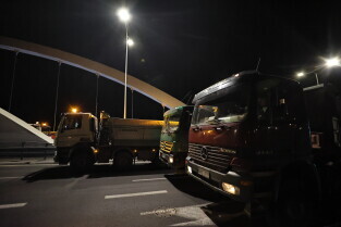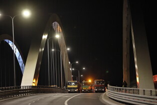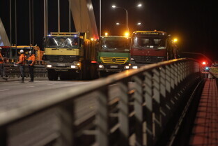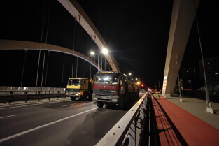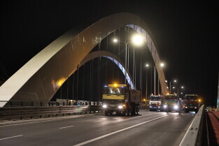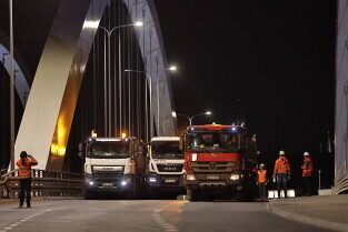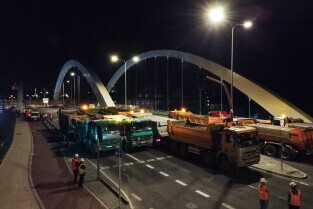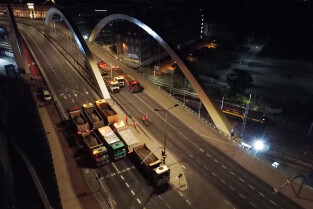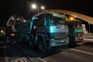Próba obciążeniowa dwóch nitek wiaduktu Biskupia Górka z wykorzystaniem samochodów ciężarowych