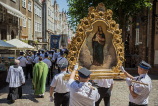 Gdańsk. Procesja św. Doroty wokół Bazyliki Mariackiej