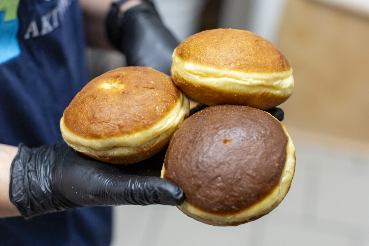 Gdańsk. W Tłusty Czwartek, już od północy, w kuchni kawiarni Caffe Aktywni na Siedlcach trwa produkcja ogromnej ilości pączków. W produkcji tradycyjnych słodkości pomagają osoby z niepełnosprawnościami intelektualnymi.