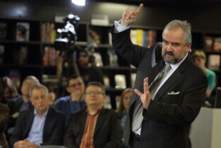 Gdańsk Europejskie Centrum Solidarności. Program Telewizji TVN 24 pt. Arena Idei "Czy nacjonalizm to patriotyzm?" Nz. Marek Kochan, pisarz, badacz języka z Uniwersytetu SWPS.
