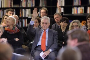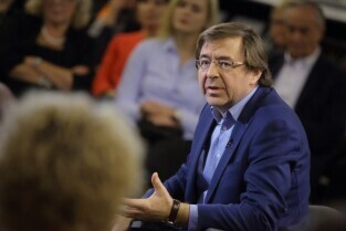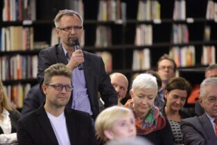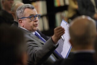 Gdańsk Europejskie Centrum Solidarności. Program Telewizji TVN 24 pt. Arena Idei "Czy nacjonalizm to patriotyzm?" Nz. Stefan Chwin, historyk literatury, prozaik i eseista z Uniwersytetu Gdańskiego.