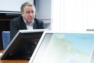 Urząd Miejski w Gdańsku. Konferencja prasowa dotycząca programowi modernizacji chodników w Gdańsku. Nz. Dyrektor ZDiZ w Gdańsku Mieczysław Kotłowski