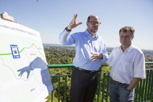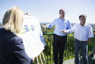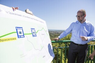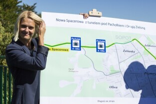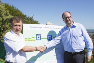 Gdańsk Oliwa, Wzgórze Pachołek. Konferencja prasowa Prezydenta Gdańska Pawła Adamowicza i Sopotu Jacka Karnowskiego poświęcona projektowi Nowej Spacerowej z tunelem pod Pachołkiem