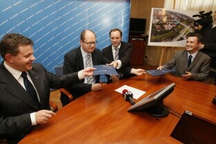 Podpisanie umowy ze Scott Wilson sp. z o.o. na sporządzenie dokumentacji projektowej przystanku SKM Śródmieście oraz przedłużenia linii od dworca Gdańsk Gł. Nz. Prezydent Gdańska Paweł Adamowicz