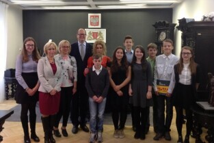 Urząd Miejski w Gdańsku. Uczniowie z Gimnazjum nr 8, którzy we wrześniu zwyciężyli w Grze Miejskiej inaugurującej zgamifikowane Lekcje Przedsiębiorczości, odwiedzili dziś prezydenta Gdańska Pawła Adamowicza.