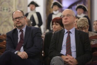 Gdańsk, Ratusz Głównego Miasta. Promocja Książki "Rządzący i Rządzeni" Nz Prezydent Gdańska Paweł Adamowicz i Tomasz Posadzki-były Prezydent Gdańska .