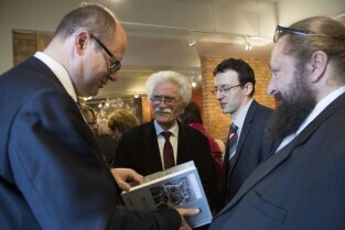 Promocja książki Dietera Schenka pt. "Gdańsk 1930-1945. Koniec pewnego Wolnego Miasta". Gdańsk, Muzeum Poczty Polskiej. Nz. Prezydent Gdańska Paweł Adamowicz