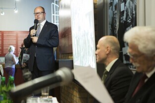 Promocja książki Dietera Schenka pt. "Gdańsk 1930-1945. Koniec pewnego Wolnego Miasta". Gdańsk, Muzeum Poczty Polskiej