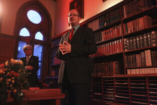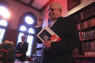 Promocja książki "Gdańsk w literaturze", która odbyła się w Czytelni Biblioteki Gdańskiej PAN. Nz. Prezydent Gdańska Paweł Adamowicz