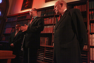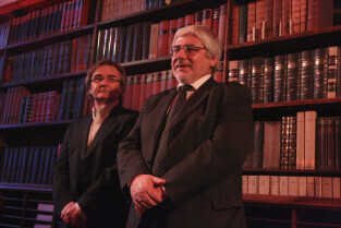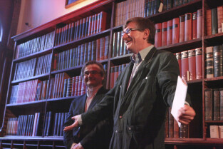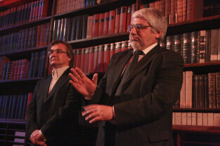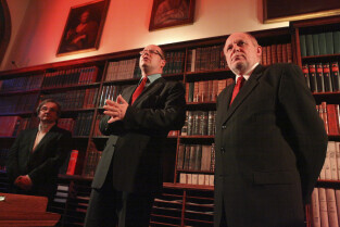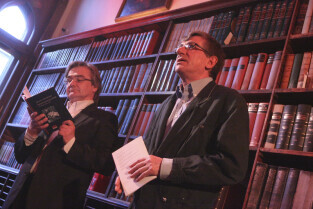 Promocja książki "Gdańsk w literaturze", która odbyła się w Czytelni Biblioteki Gdańskiej PAN. Nz. od prawej Dyrektor MHMG Adam Koperkiewicz i Prezydent Gdańska Paweł Adamowicz