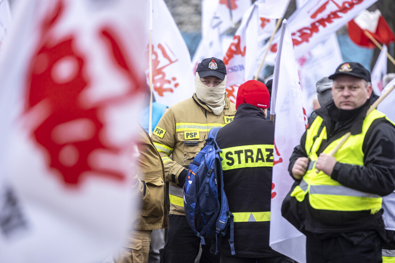 Gdańsk. Protest przeciwko Zielonemu Ładowi zorganizowany przez Komisją Krajową NSZZ Solidarność pod Europejskim Centrum Solidarności, w którym trwa Kolegium Komisarzy UE