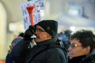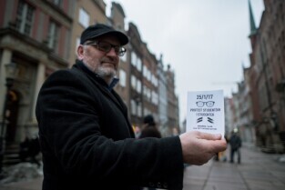 Protest środowisk studenckich i doktoranckich. Gdańsk, Długi Targ. Nz Jan, student.