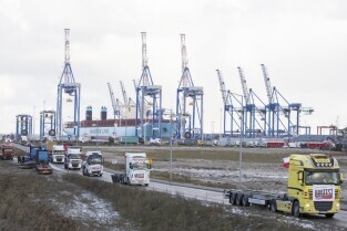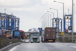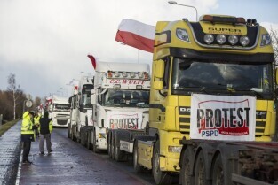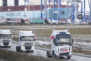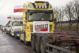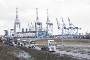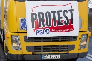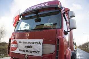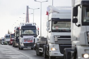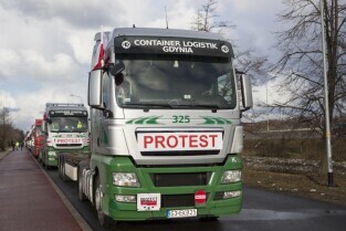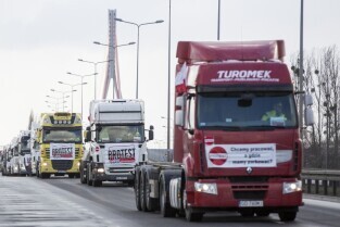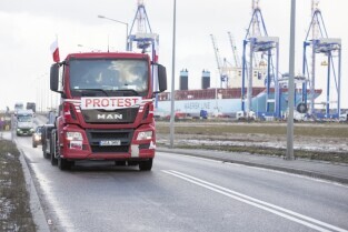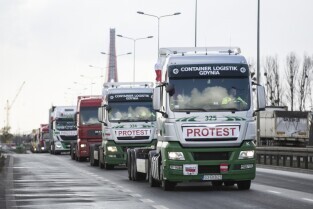 Protest kierowców ciężarówek przeciwko złym warunkom parkingowym przy obsłudze Terminalu Kontenerowego DCT. Kolumna TIR-ów przejechała Trasą Sucharskiego i ul. Kontenerową pomiędzy Mostem im. Jana Pawła II, a terminalem DCT.