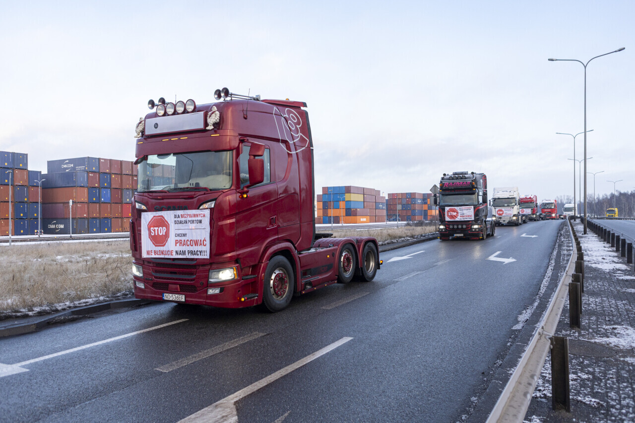 Gdańsk. Kierowcy ciężarówek obsługujący porty w Gdańsku i Gdyni zorganizowali protest pod terminalem BalticHub. Kilka dziesiąt tirów zablokowało drogę prowadzącą do portu jadąc w konwoju ze zmniejszoną prędkością. Część kierowców na dwie godziny zablokowała również przejście dla pieszych na drodze prowadzącej do terminalu