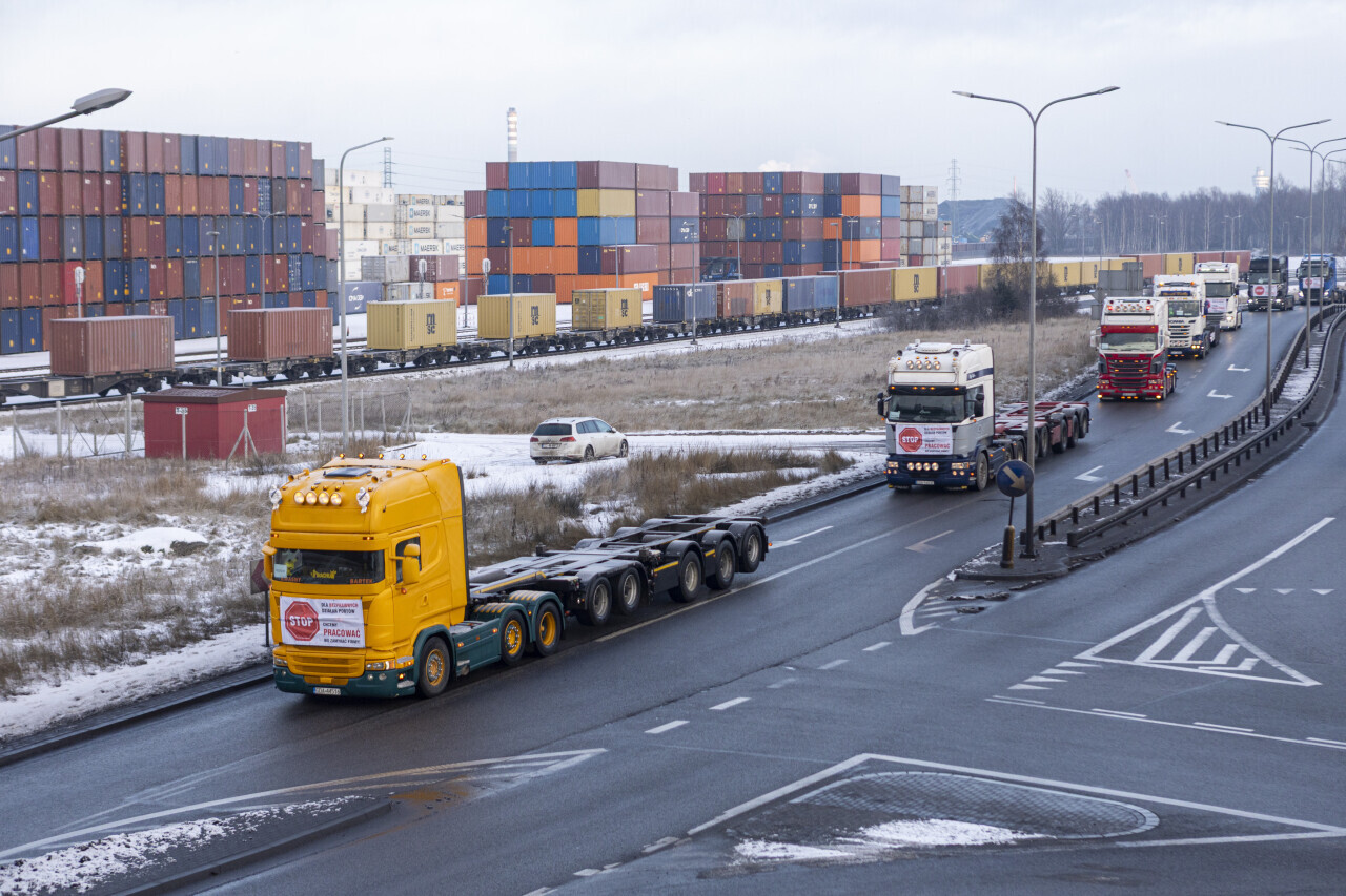Gdańsk. Kierowcy ciężarówek obsługujący porty w Gdańsku i Gdyni zorganizowali protest pod terminalem BalticHub. Kilka dziesiąt tirów zablokowało drogę prowadzącą do portu jadąc w konwoju ze zmniejszoną prędkością. Część kierowców na dwie godziny zablokowała również przejście dla pieszych na drodze prowadzącej do terminalu