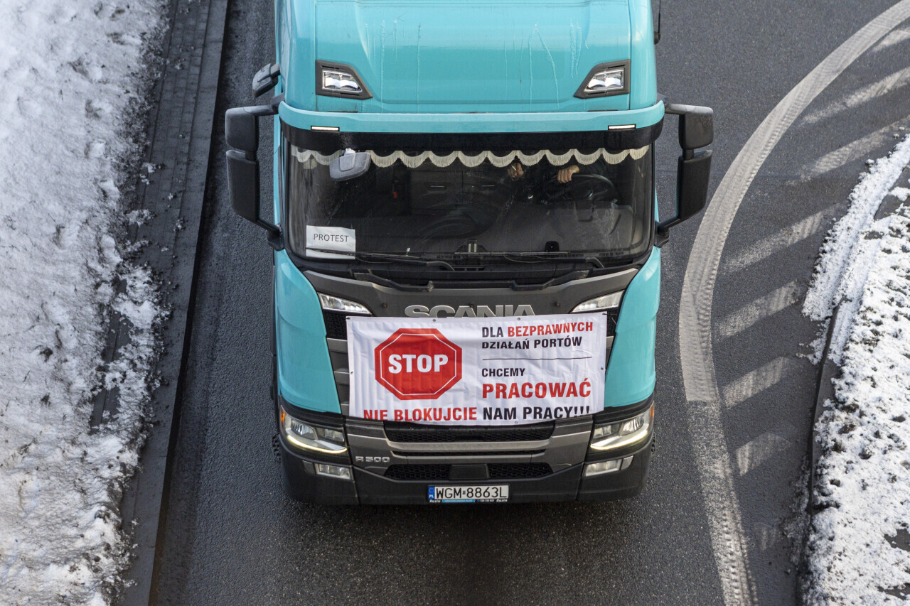 Gdańsk. Kierowcy ciężarówek obsługujący porty w Gdańsku i Gdyni zorganizowali protest pod terminalem BalticHub. Kilka dziesiąt tirów zablokowało drogę prowadzącą do portu jadąc w konwoju ze zmniejszoną prędkością. Część kierowców na dwie godziny zablokowała również przejście dla pieszych na drodze prowadzącej do terminalu