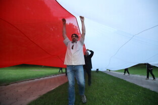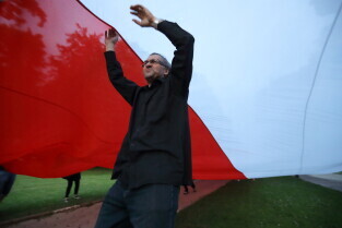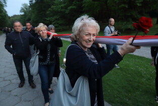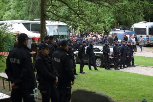 Gdańsk. Cmentarz Centralny Srebrzysko. Protest przeciwko ekshumacji Arkadiusza Rybickiego.