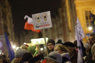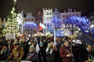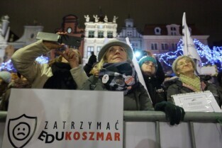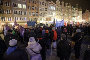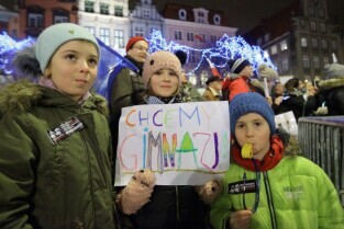 Gdańsk Długi Targ. Protest przeciwko planowanym przez rząd zmianom w oświacie.