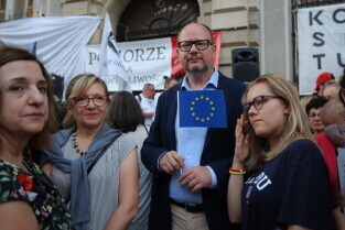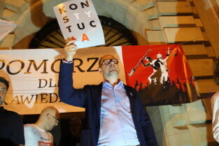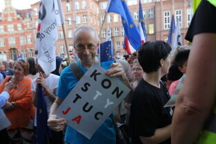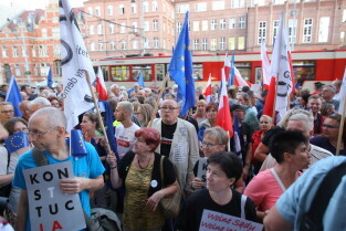 Protest przeciwko zmianom w sądownictwie wprowadzanym przez rząd. Gdańsk ul. Nowe Ogrody, przed Sądem Okręgowym