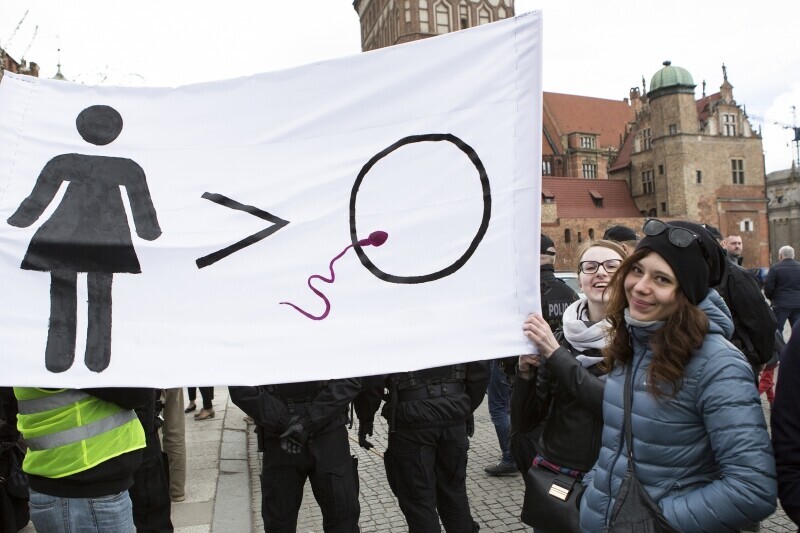 Gdańsk, Targ Węglowy. Protest przeciwko projektowi nowej ustawy antyaborcyjnej oraz kontrmanifestacja