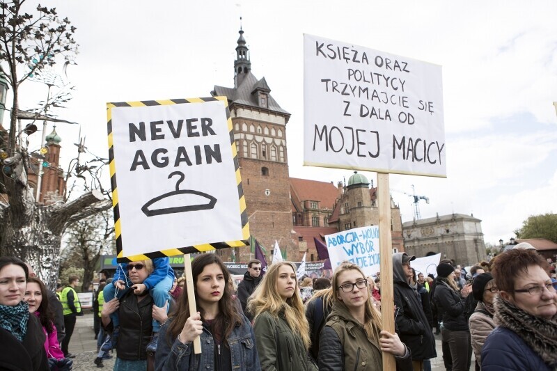 Gdańsk, Targ Węglowy. Protest przeciwko projektowi nowej ustawy antyaborcyjnej oraz kontrmanifestacja