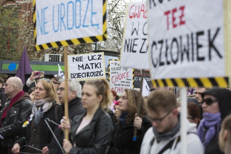 Gdańsk, Targ Węglowy. Protest przeciwko projektowi nowej ustawy antyaborcyjnej oraz kontrmanifestacja