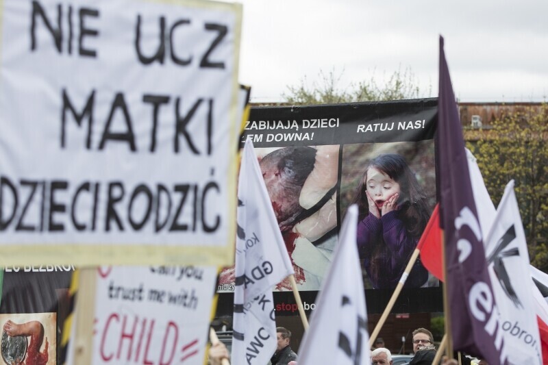 Gdańsk, Targ Węglowy. Protest przeciwko projektowi nowej ustawy antyaborcyjnej oraz kontrmanifestacja