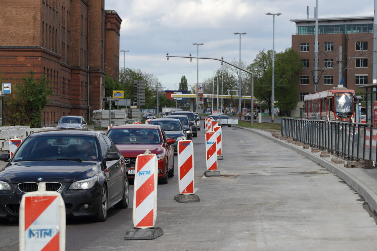 Gdańsk. Przebudowa Podwala Przedmiejskiego na wysokości z ul. Łąkową.