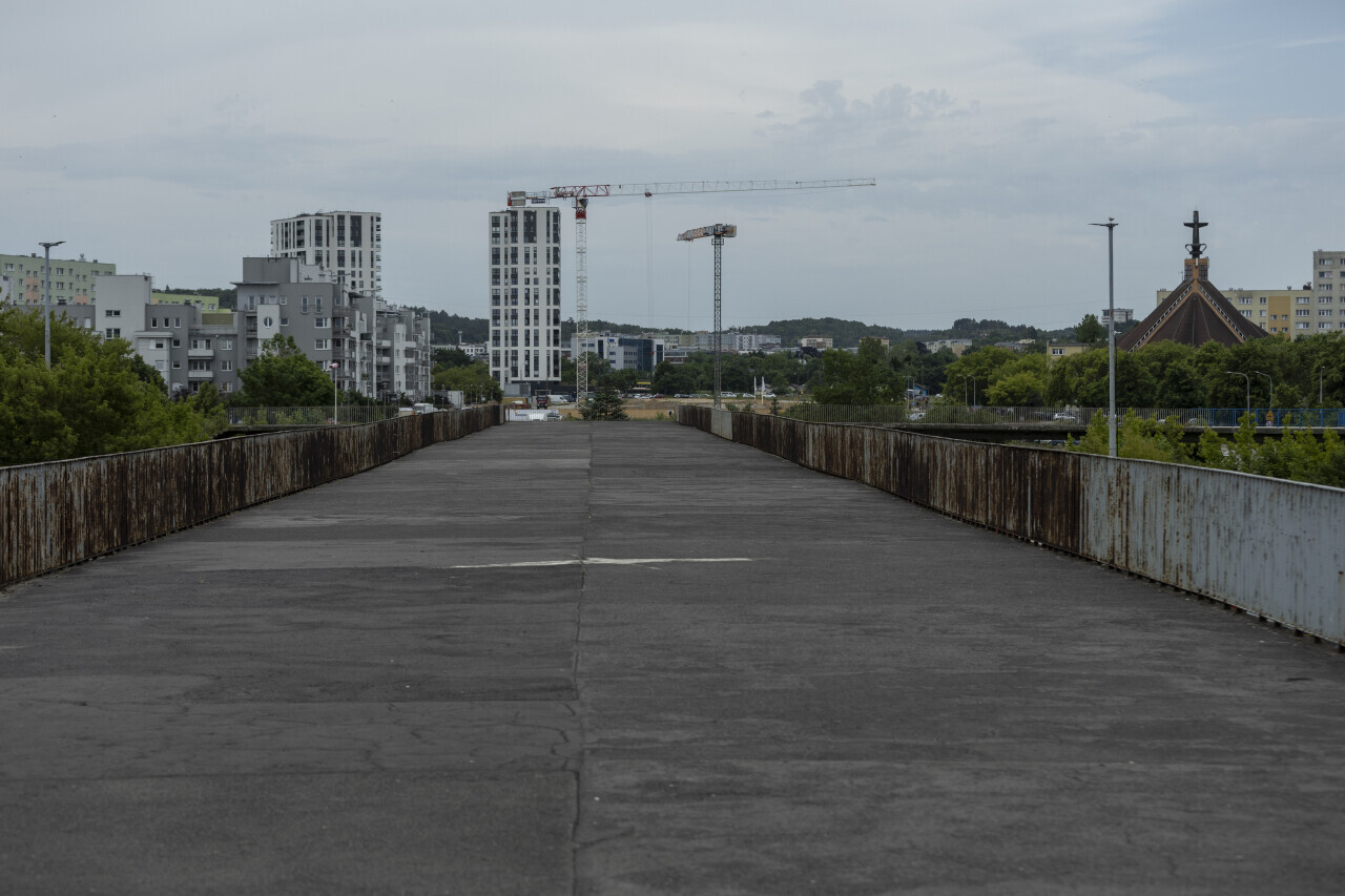 Gdańsk.Przebudowa kładki na Zaspie – briefing prasowy. W konferencji udział wzięli: Aleksandra Dulkiewicz, prezydent Gdańska, Piotr Grzelak, zastępca prezydenta ds. zrównoważonego rozwoju i gospodarki, Agnieszka Owczarczak, przewodnicząca Rady Miasta Gdańska i radny Marcin Makowski.