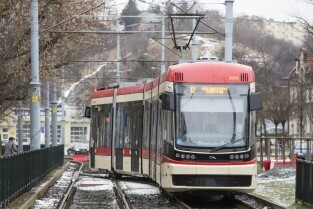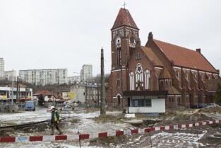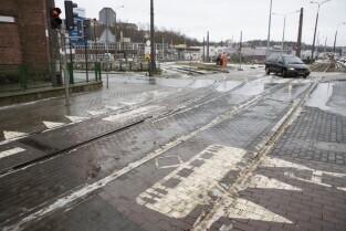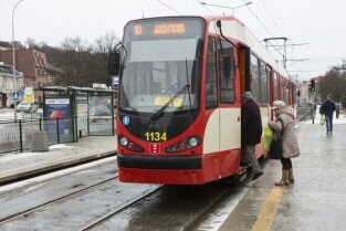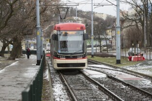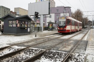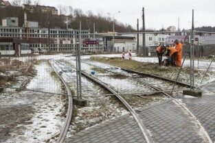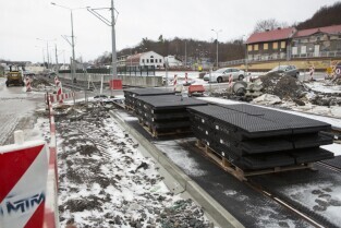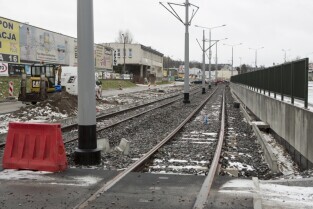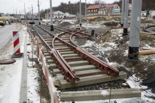 Gdańsk Siedlce. Zamknięta z powodu przebudowy pętla tramwajowa. Inwestycja jest częścią budowy linii tramwajowej do Piecek-Migowa. Nz. przystanek "Skrajna", do którego dojeżdżają dwukierunkowe tramwaje