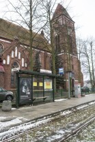 Gdańsk Siedlce. Zamknięta z powodu przebudowy pętla tramwajowa. Inwestycja jest częścią budowy linii tramwajowej do Piecek-Migowa. Nz. zawieszony przystanek Siedlce