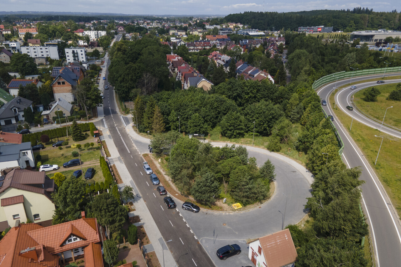 Gdańsk. Przebudowana ul. Kielnieńska na odcinku od ul. Drawskiej do pętli autobusowej przy obwodnicy Trójmiasta w dzielnicy Osowa.