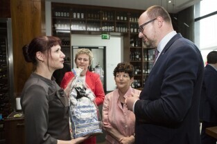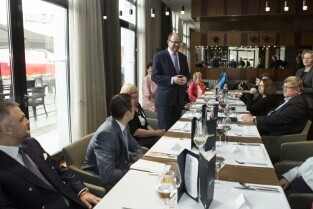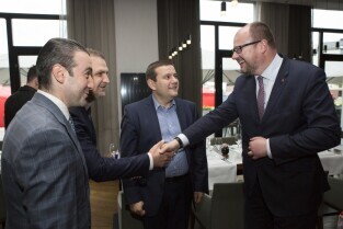 Spotkanie Prezydenta Gdańska Pawła Adamowicza z przedstawicielami miast partnerskich Gdańska. Hotel Hilton w Gdańsku