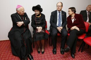 Otwarcie Przedszkola Specjalnego dla Dzieci z Autyzmem przy ul. Malczewskiego 139 w Gdańsku. Fundatorem placówki jest Barbara Piasecka-Johnson (nz druga od lewej). Nz. abp Tadeusz Gocłowski, Prezydent Gdańska Paweł Adamowicz, Minister Edukacji Katarzyna Hall