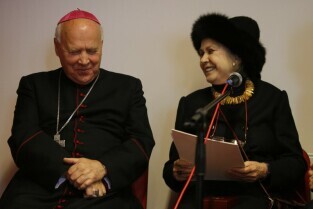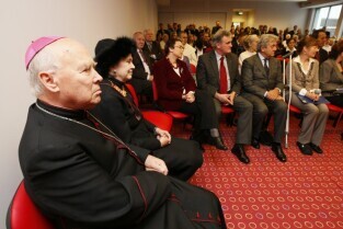 Otwarcie Przedszkola Specjalnego dla Dzieci z Autyzmem przy ul. Malczewskiego 139 w Gdańsku. Fundatorem placówki jest Barbara Piasecka-Johnson (nz.), po lewej abp Tadeusz Gocłowski.
