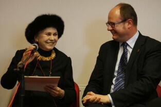 Otwarcie Przedszkola Specjalnego dla Dzieci z Autyzmem przy ul. Malczewskiego 139 w Gdańsku. Fundatorem placówki jest Barbara Piasecka-Johnson (nz). Nz. po prawej Prezydent Gdańska Paweł Adamowicz
