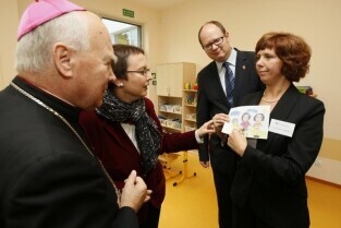 Otwarcie Przedszkola Specjalnego dla Dzieci z Autyzmem przy ul. Malczewskiego 139 w Gdańsku. Fundatorem placówki jest Barbara Piasecka-Johnson. Nz. od lewej: abp Tadeusz Gocłowski, Minister Edukacji Katarzyna Hall, Prezydent Gdańska Paweł Adamowicz, wicedyrektor Iwona Ruta-Sominka