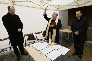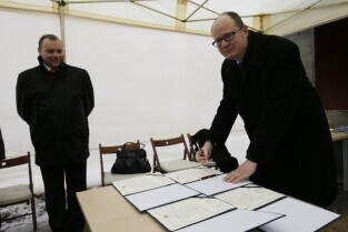Wmurowanie kamienia węgielnego pod pierwsze z pięciu przedszkoli modułowych. Budynek pomieści około 100 dzieci. Jego unikalną cechą jest to, że można go rozebrać i przenieść w inne miejsce - tam gdzie akurat brakuje tego typu placówek. Gdańsk Ujeścisko, ul. Anny Jagiellonki.