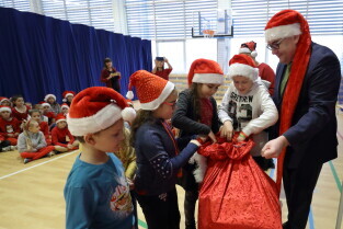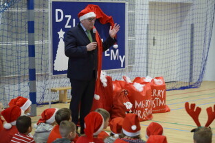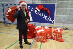 Gdańsk. Przekazanie 30 laptopów dla uczniów najmłodszych klas Szkoły Podstawowej nr 86. Nz. Wiceprezydent Gdańska Piotr Kowalczuk.