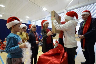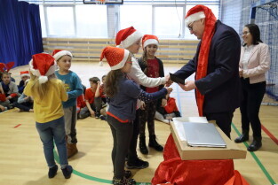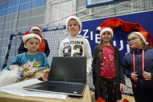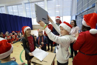 Gdańsk. Przekazanie 30 laptopów dla uczniów najmłodszych klas Szkoły Podstawowej nr 86.