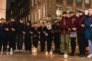 Gdańsk. Na Długim Targu odbyło się uroczyste przekazanie Betlejemskiego Światła Pokoju mieszkańcom Gdańska oraz delegacjom hufców Chorągwi Gdańskiej ZHP.