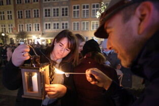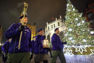 Gdańsk.Przekazanie Betlejemskiego Światła Pokoju na Długim Targu.