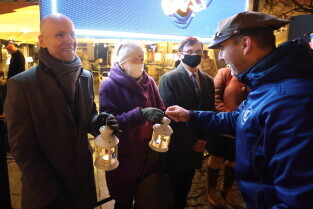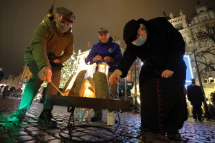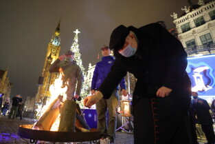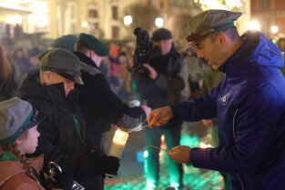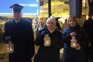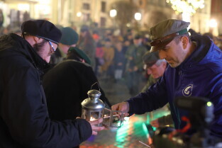 Przekazanie Betlejemskiego Światła Pokoju na Długim Targu.